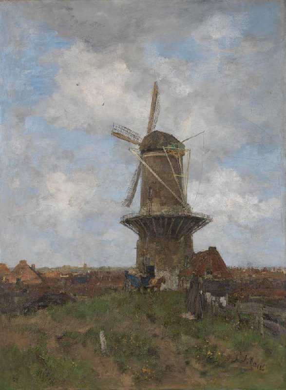 De molen was al in de 17de eeuw een vertrouwd thema binnen de Nederlandse schilderkunst. In de 19de eeuw was Jacob Maris een van de schilders van de Haagse School die voortborduurde op dit onderwerp. De molen die hier te zien is, bestond niet echt. Het is een samenstelsel van verschillende molens waar hij tijdens zijn wandelingen in de polder langs liep.