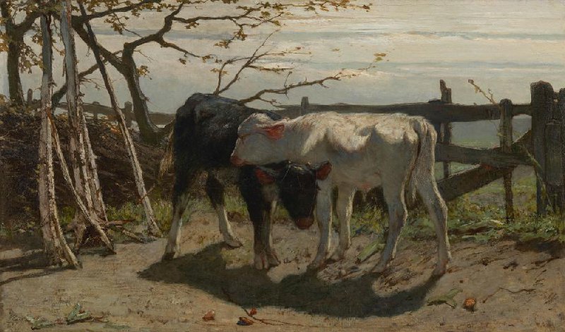 Willem Maris was de jongste van drie schilderende broers. Hij was pas een jaar of 19 toen hij dit schilderij van twee kalfjes maakte.