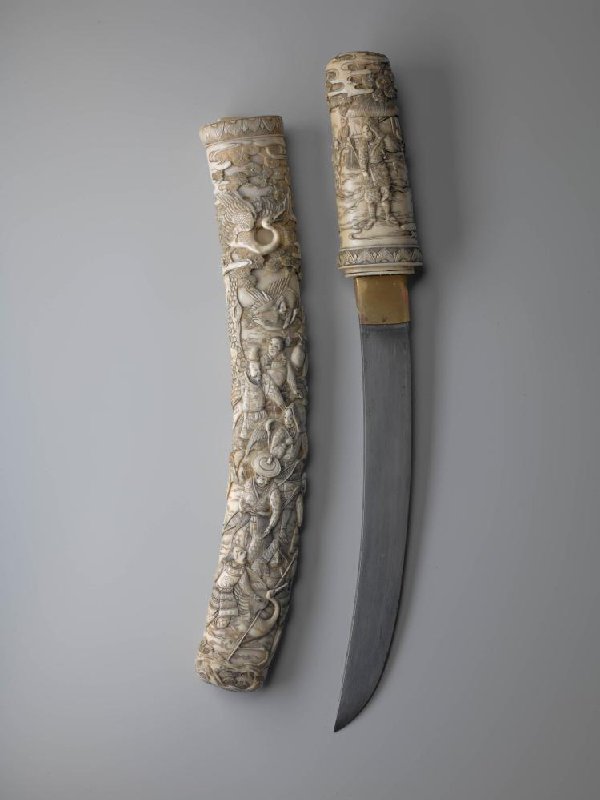 Dolk met reliëfdecor van een kraanvogeljacht