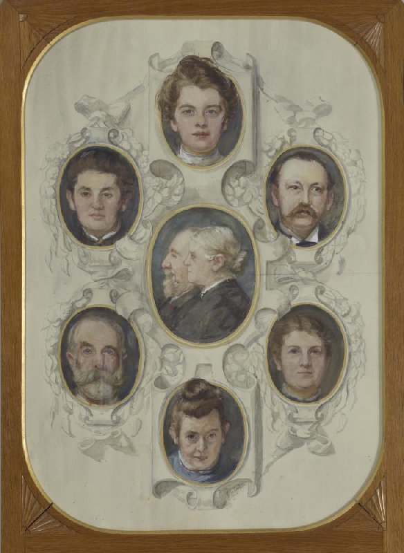 Portretten van leden van de familie Van Houten, onderdeel van het kamerscherm aangeboden aan Samuel van Houten ter gelegenheid van zijn zeventigste verjaardag